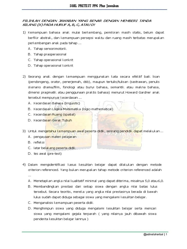 Memberikan penilaian terhadap aktivitas, tahap kemajuan dan hasil kerja siswa dari proses belajar di kelas maupun di luar kelas. Latihan soal pretes ppg pedagogik kelas atas . Contoh soal pre test ppg model c disertai kunci jawaban. Latihan soal pretes ppg pedagogik guru kelas sd.baca selengkapnya. Contoh soal tes ppg kali ini akan dipakai sebagai bahan latihan untuk kamu yang sedang menunggu giliran tes pendidikan profesi guru. Soal latihan pre tes ppg ( soal latihan utn plpg) . Kunci jawaban untuk guru sd baik guru kelas rendah (awal) dan guru kelas tinggi . Standar minimal nilai hasil seleksi . Soal pretest ppg pedagogik kelas atas sd. Seleksi kemampuan akademik meliputi tes potensi akademik (tpa), tes pedagogik, tes bidang studi, dan tes bakat dan minat.
